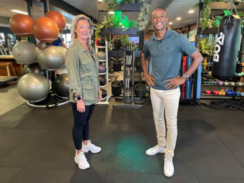Maikel Olie (Sport- en Gezondheidscentrum De Vennen) vertelt Gregory Sedoc meer over FitnessLoont! in sportpark De Vennen
