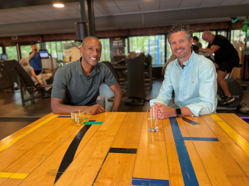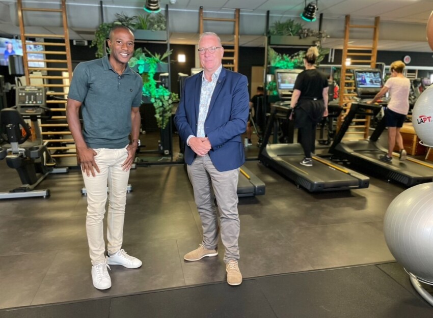 Wethouder van de gemeente Dongen Rene Jansen vertelt Gregory Sedoc over samenwerking met het project FitnessLoont!