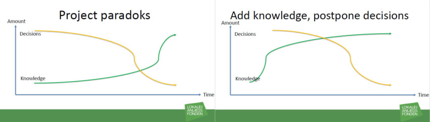 Een probleem om tot innovatieve projecten te komen is volgens Matsson de ‘project paradox’. Beslissingen moeten vroeg in het proces genomen worden (denk bijvoorbeeld aan een aanbesteding), terwijl je dan nog niet alle benodigde kennis hebt opgedaan. Zo kom je moeilijk tot innovaties. Om tot accommodaties te komen die beter aansluiten bij de wensen en behoeften, zou kennis veel eerder in het proces vergaard moeten worden en beslissingen worden uitgesteld.
