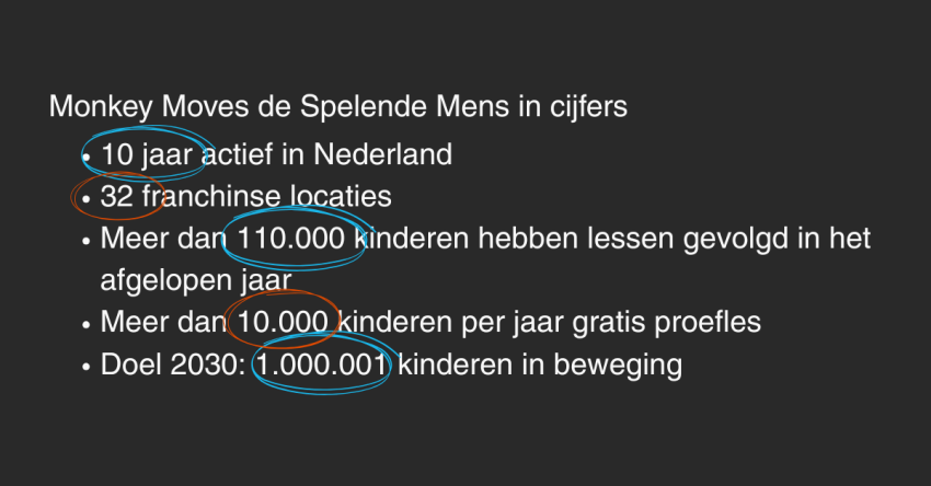 Van vier oprichters groeide Monkey Moves op indrukwekkende wijze door naar inmiddels 32 franchise-ondernemers. De keuze voor franchise was bewust. "We wisten meteen dat we dit op grote schaal wilden," vertelt Van Gaalen. "Maar we merkten dat we de lokale ondernemende geest nodig hadden om dit echt goed neer te zetten. Via Social Enterprise NL kwamen we in een 'pressurecooker’ voor sociaal ondernemerschap terecht, waar het franchise-model ontstond. We willen namelijk niet afhankelijk zijn van subsidies. Als een overheid bedenkt 'we stoppen ermee', dan stort het hele kaarthuis in elkaar. Daarnaast kunnen we als ondernemers juist zo’n goed product maken, zo'n goede dienst voor ouders, dat ze ervoor willen betalen. Dat betekent dat we duurzaam impact kunnen maken."